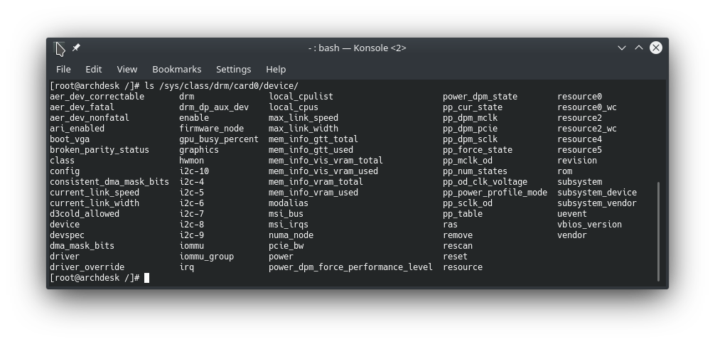 커널 파라메터를 제대로 설정하고 부팅하였다면 /sys/class/drm/card0/device/ 디렉토리 안에 pp_od_clk_voltage 등의 파일이 추가되었을 것입니다.