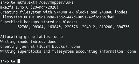 현재 최신의 LUKS 버전은 2이기 때문에 LUKS2를 사용하도록 옵션을 넣었습니다. 만약 옵션을 사용하지 않는다면 LUKS1으로 포맷됩니다.