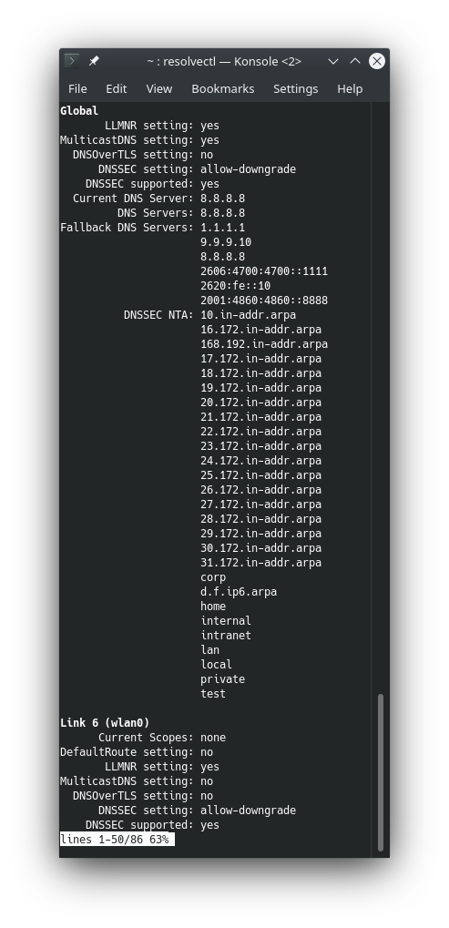 현재 시스템과 인터페이스 별 상태를 보고싶다면 resolvectl 명령으로 확인할 수 있습니다.