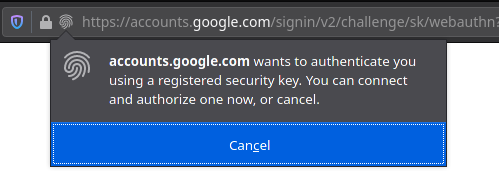Webauthn을 통해 2차 인증을 하게된다면 아래와 같이 브라우저에서 사용자에게 인증키 조작을 요구합니다.