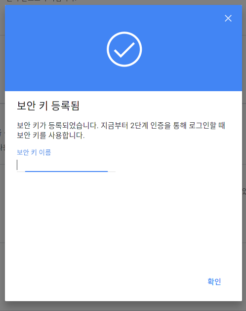 이렇게하면 2단계 인증에 보안 키가 추가되고 앞으로 로그인을 하기위해 비밀번호를 입력하면 추가로 인증 키도 요구하게 됩니다.