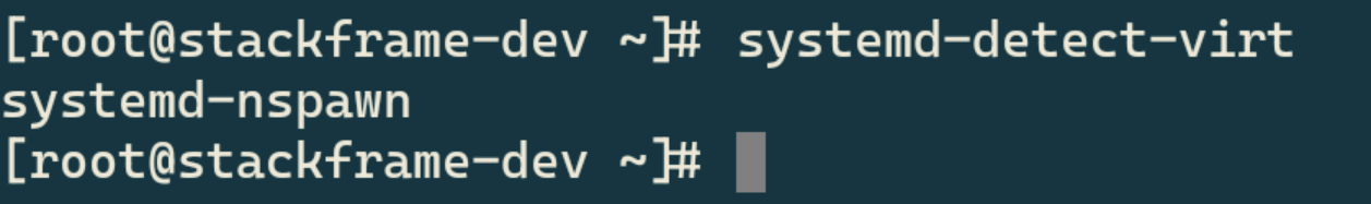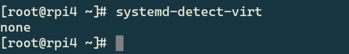systemd는 systemd-detect-virt 라는 프로그램을 포함하고 있습니다. 이를통해 현재 가상화 환경에서 실행되는지, 어떤 가상화 기술을 사용하는지 확인할 수 있습니다.