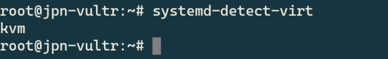 사용방법은 단순히 쉘에서 systemd-detect-virt를 실행하면 됩니다.